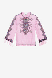 Bluse aus Matka-Seide mit Garn-, Pailletten- und Perlenstickerei