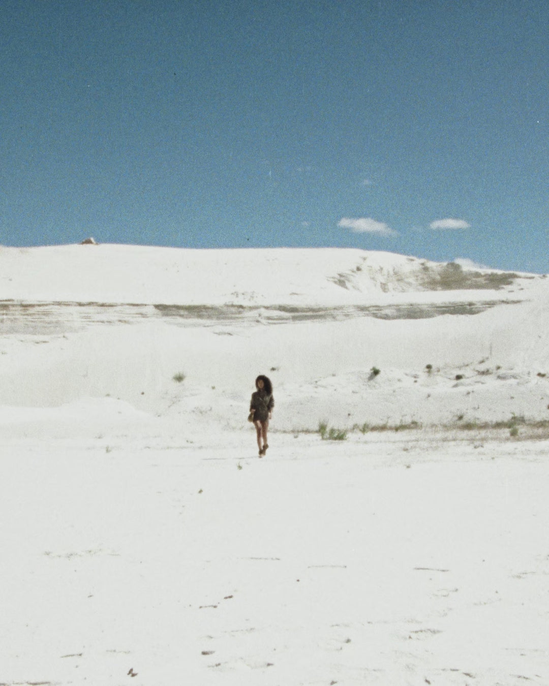 Los tonos naturales, arena, crudo, rosa pálido y bronce, juegan con los azules del cielo y el pálido brillo de la sal.