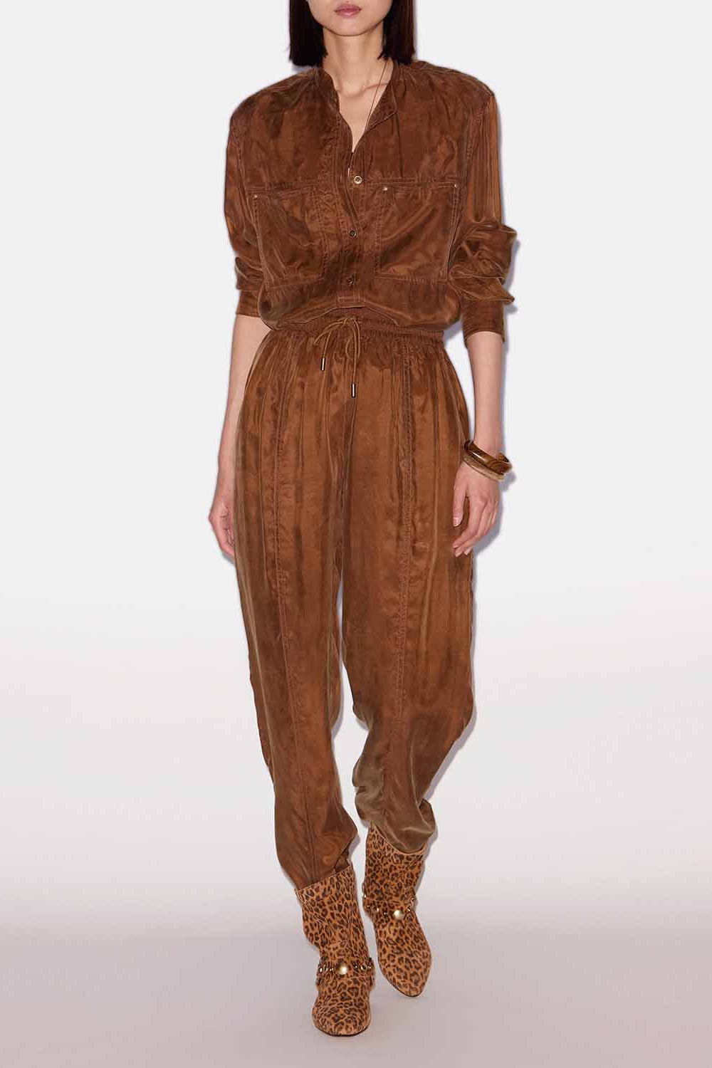 Pantalones fluidos de satén lavado