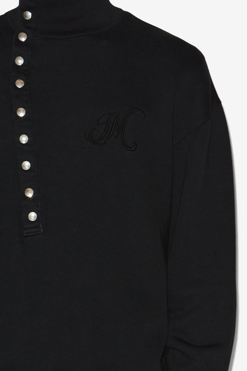 アシンメトリーボタン付き ロールネック コットンスウェットシャツ