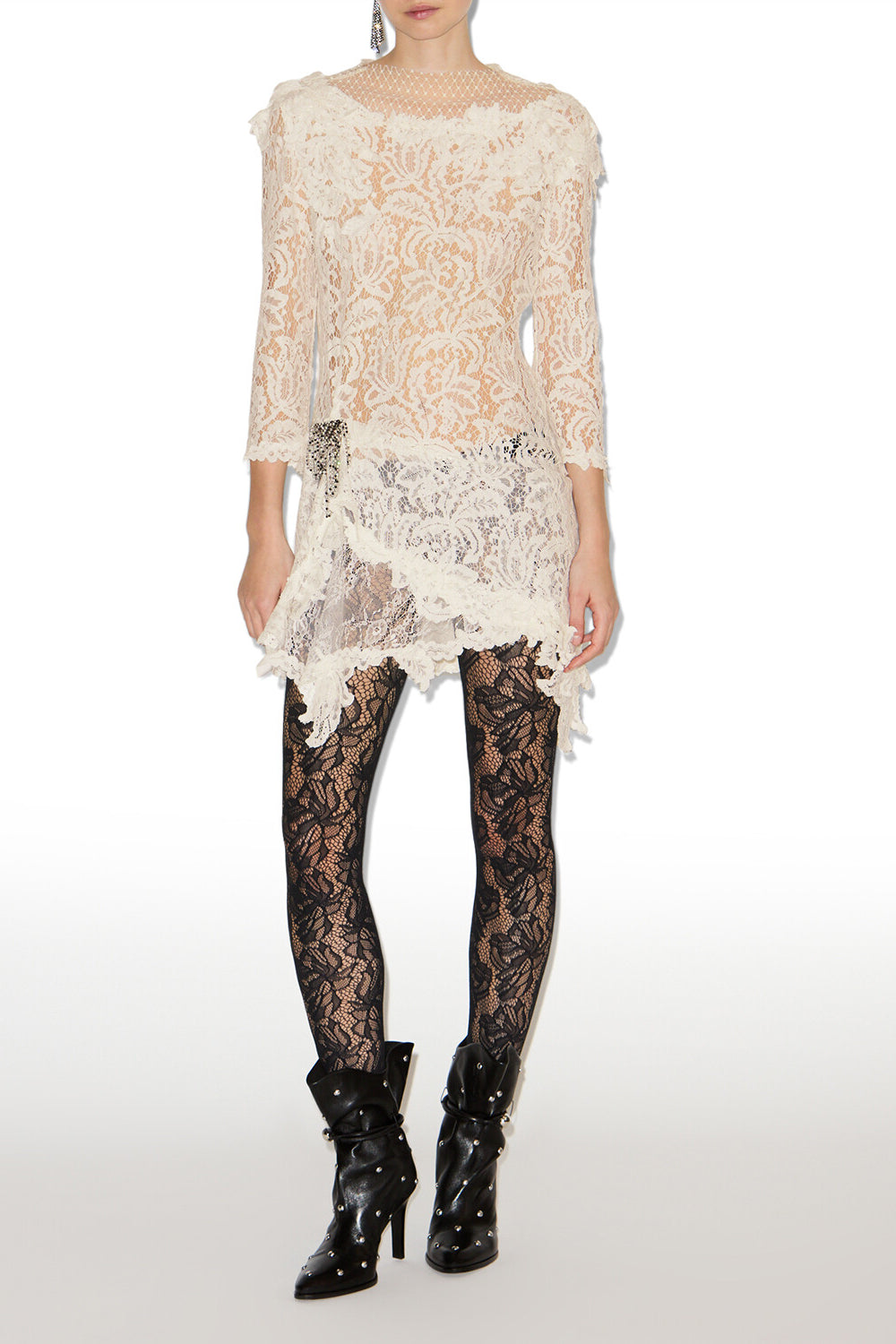소매, 칼라, 바닥 부분에 레이스 장식 디자인.