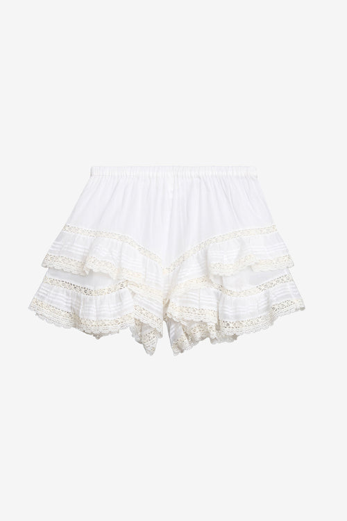 코튼 보일 & 레이스 소재의 러플 쇼츠