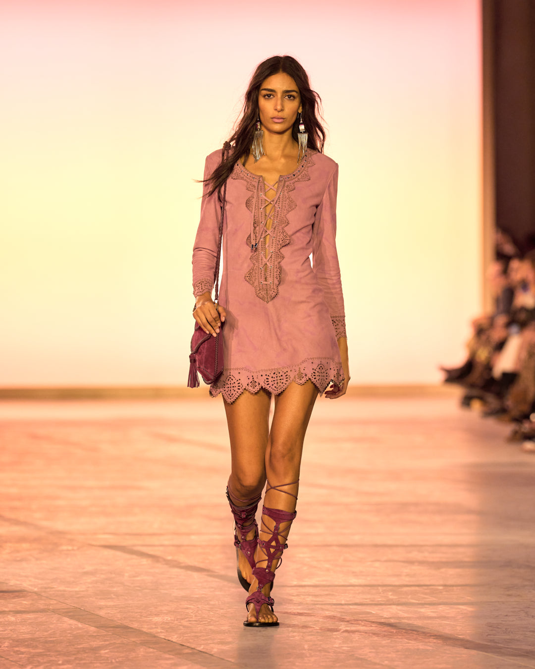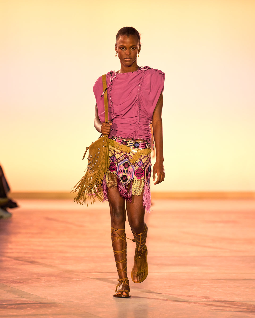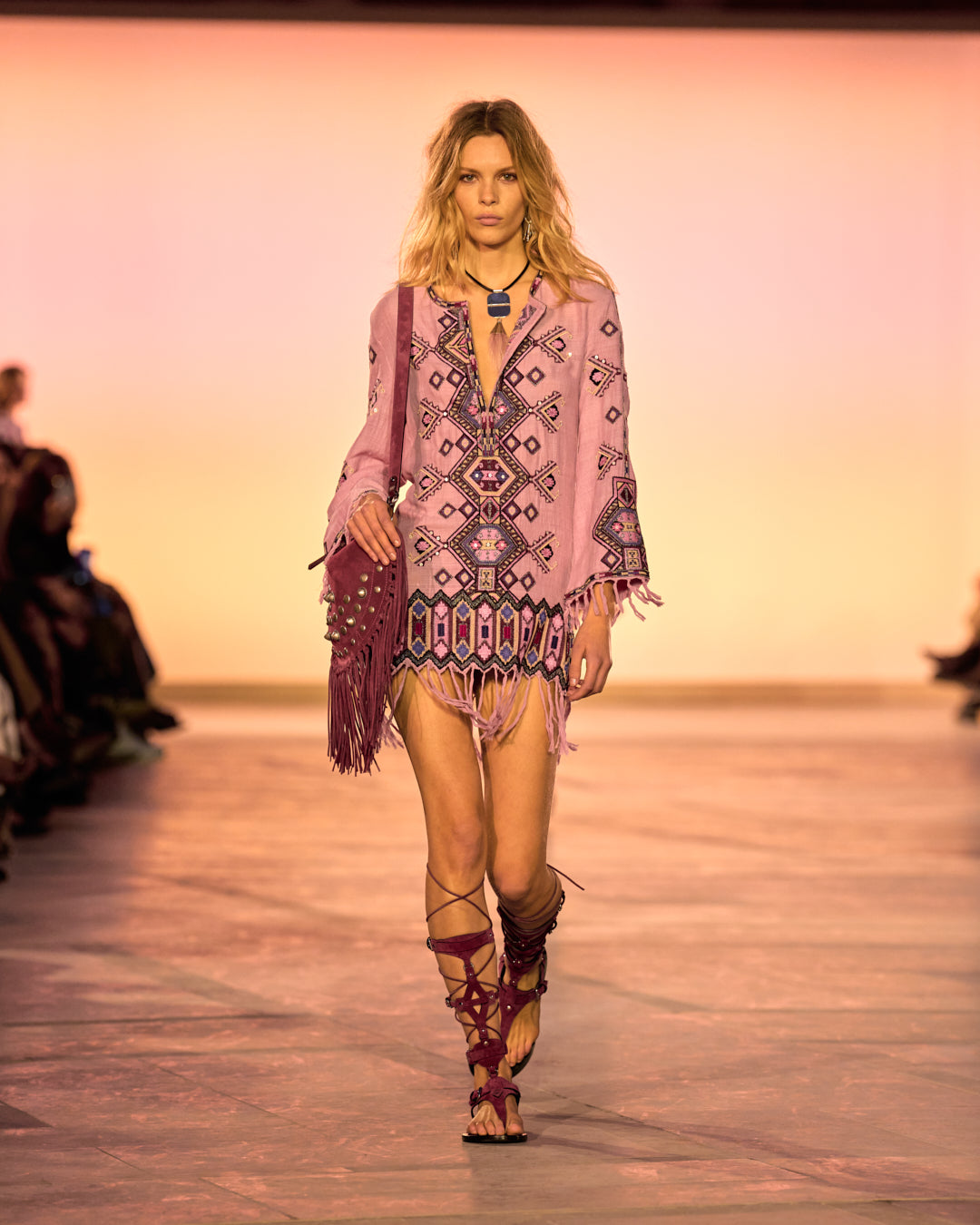Fringes take on the appearance of feathers, and dresses seem to be crafted from butterfly wings. A tropical inspiration meets the artisanal spirit, a signature of Isabel Marant.