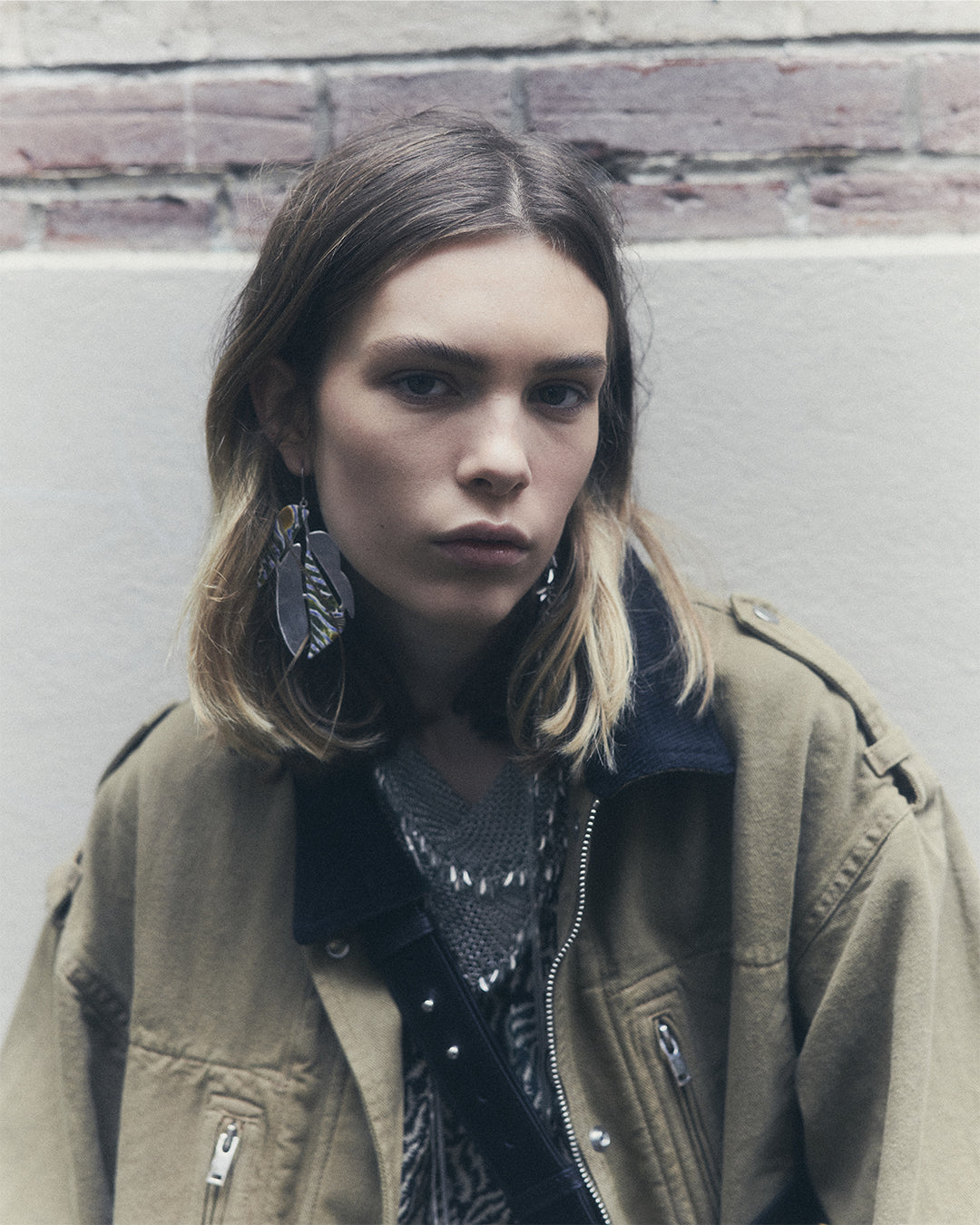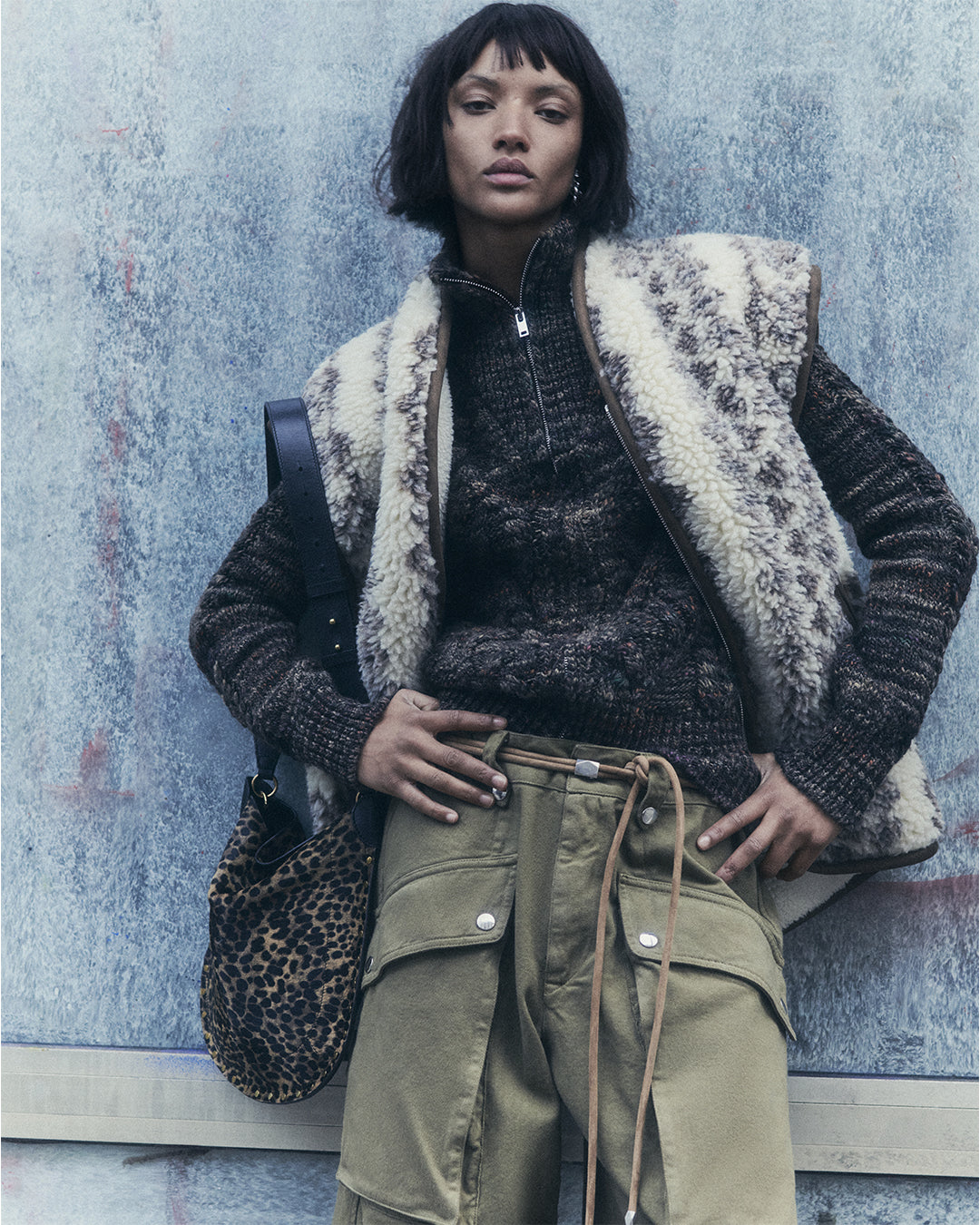 Workwear pieces in khaki take on a safari jacket-like vibe, echoing Etoile’s adventurous DNA.